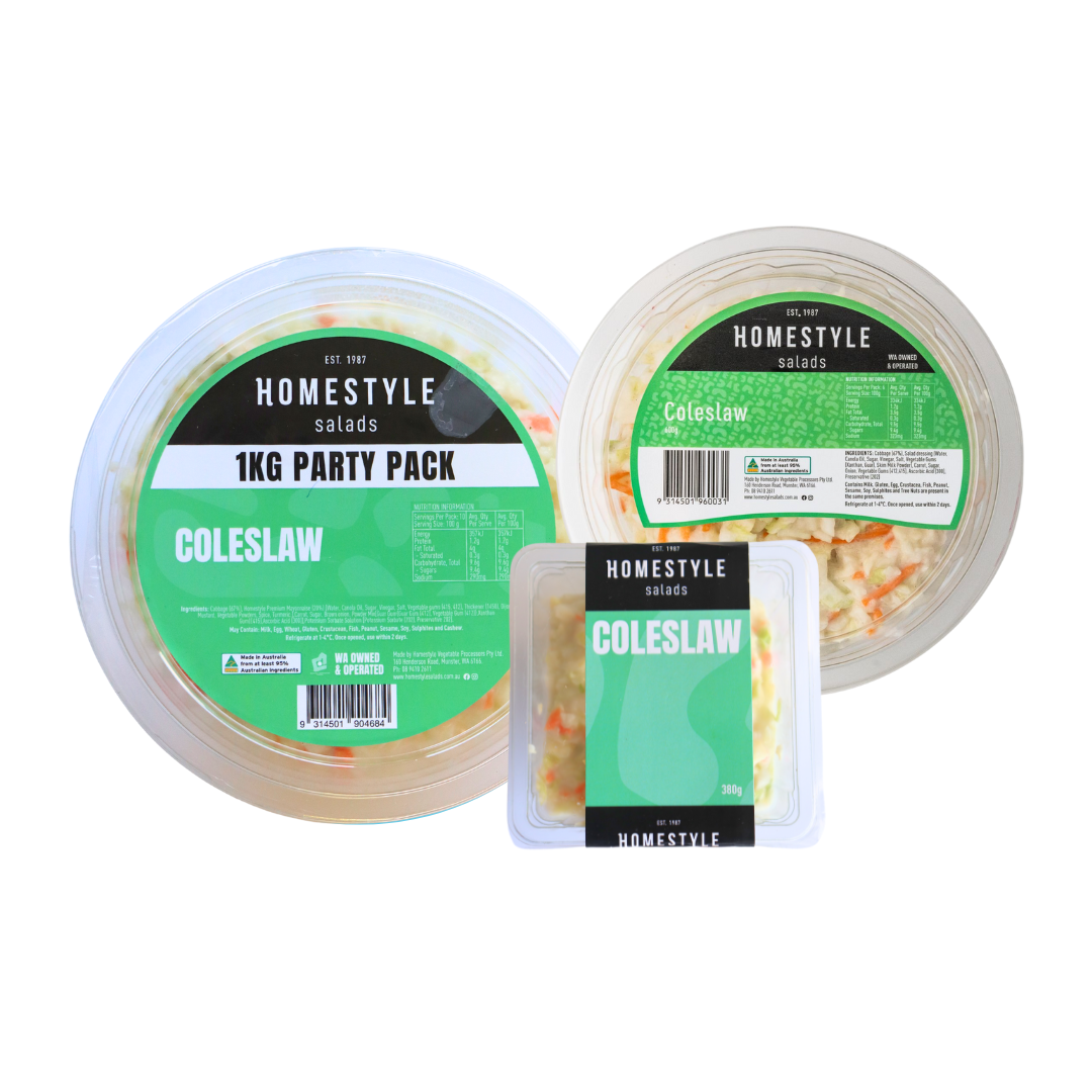 INGREDIENTS: Green Cabbage, Salad Dressing (Water, Canola Oil, Sugar, Vinegar, Salt, Vegetable Gums (Xanthan, Guar), Skim Milk Powder ), Carrot, Brown Onion, Spring Onion, Parsley