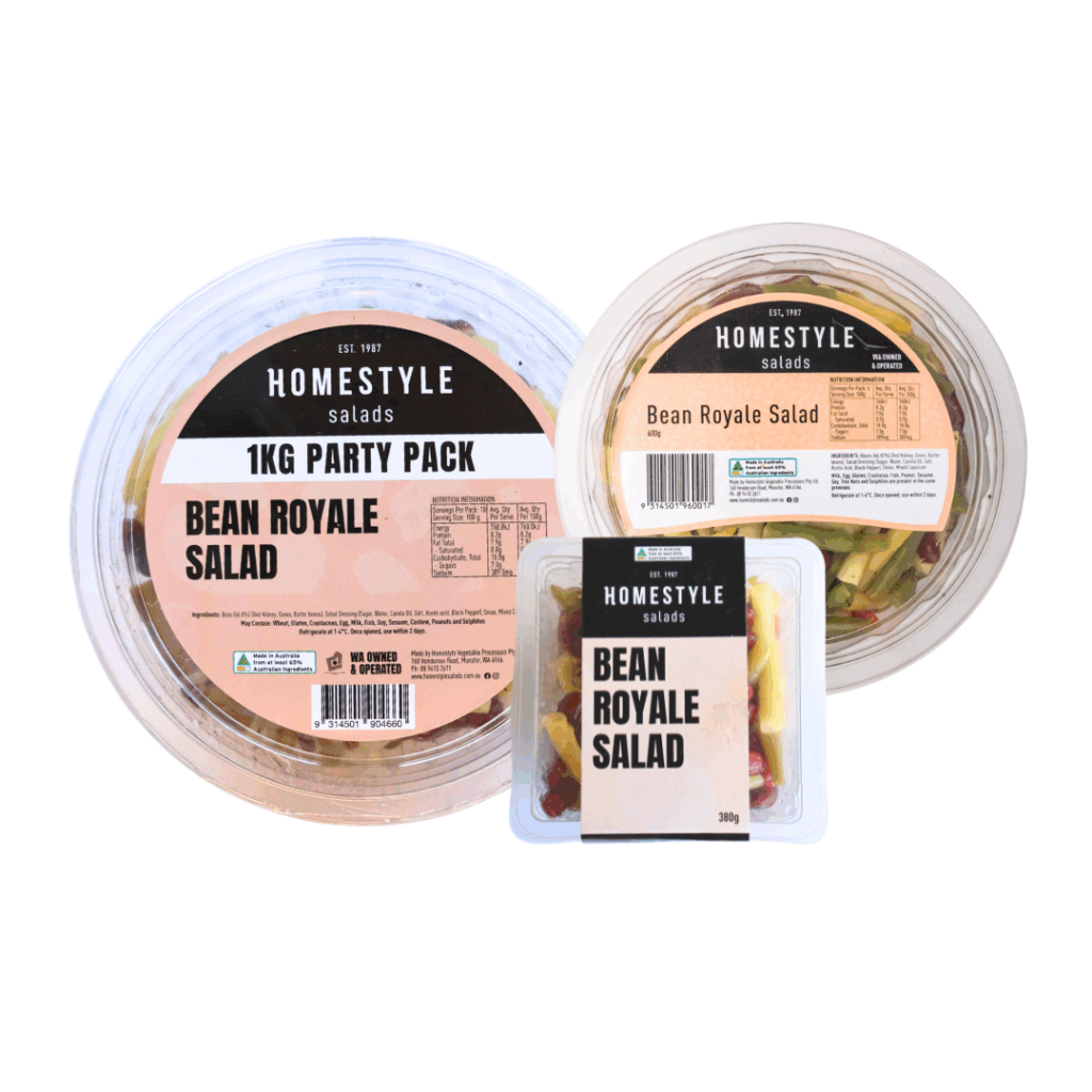 INGREDIENTS: Beans (66.82%) (Red Kidney, Green, Butter beans), Salad Dressing (Sugar, Water, Canola Oil, Salt, Acetic Acid, Black Pepper), Onion, Mixed Capsicum