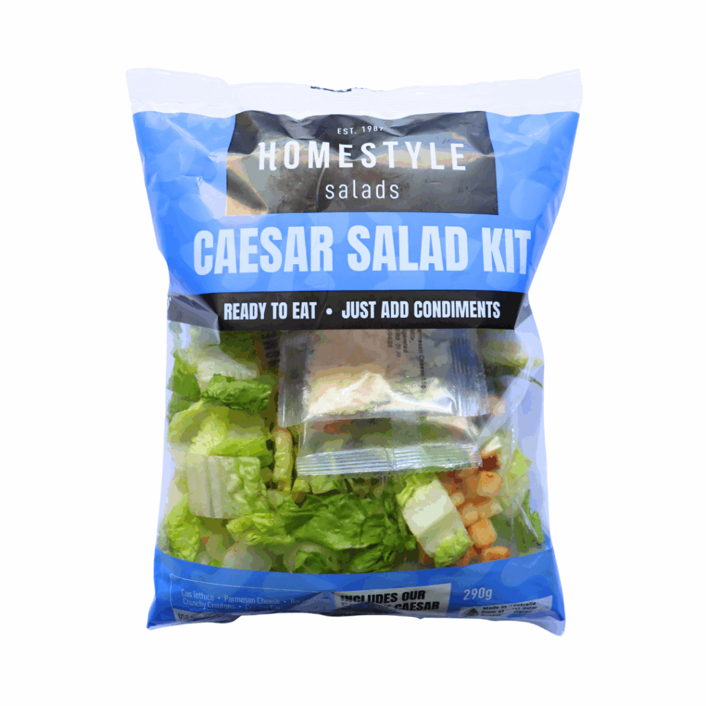 Cos Lettuce, Caesar Dressing (Water, Canola Oil, Vinegar, Sugar, Whole Egg, Parmesan Cheese [Milk], Garlic, Salt, Worcestershire Sauce, Mustard, Acidity Regulator [260, 270], Thickener [415], Herbs, Spices), Shaved Parmesan [Parmesan Cheese (Pasteurised Cow’s Milk, Salt, Starter Culture, Microbial Rennet Enzyme), Tapioca Flour, Preservative [202]], Caesar Croutons (Wheat Flour, Water, Canola Oil, Anti-caking Agent [551], Vegetable Powder [Yeast, Sugar], Salt, Gluten [Wheat], Yeast, SEF Improver [Wheat Flour, Thiamine, Folate], Flour Treatment Agents [300], Enzymes, White Vinegar), Shredded Bacon (Pork).